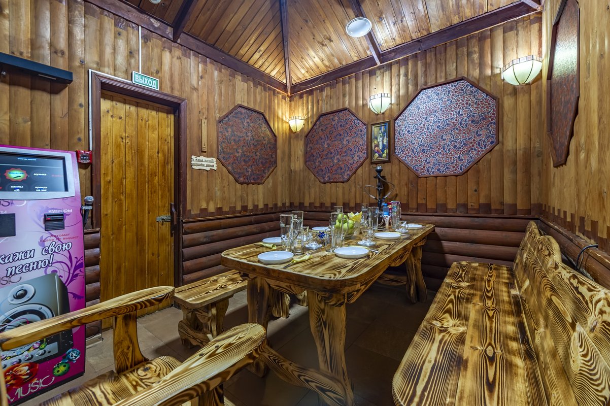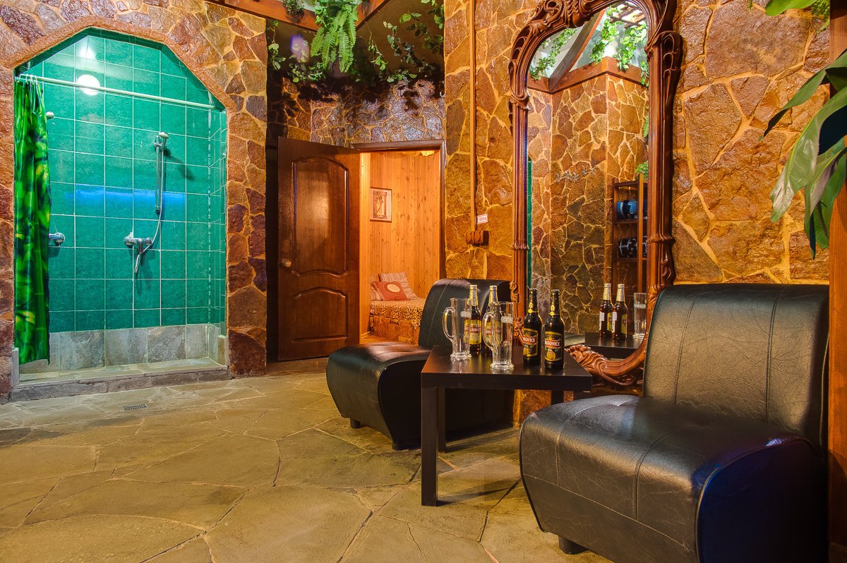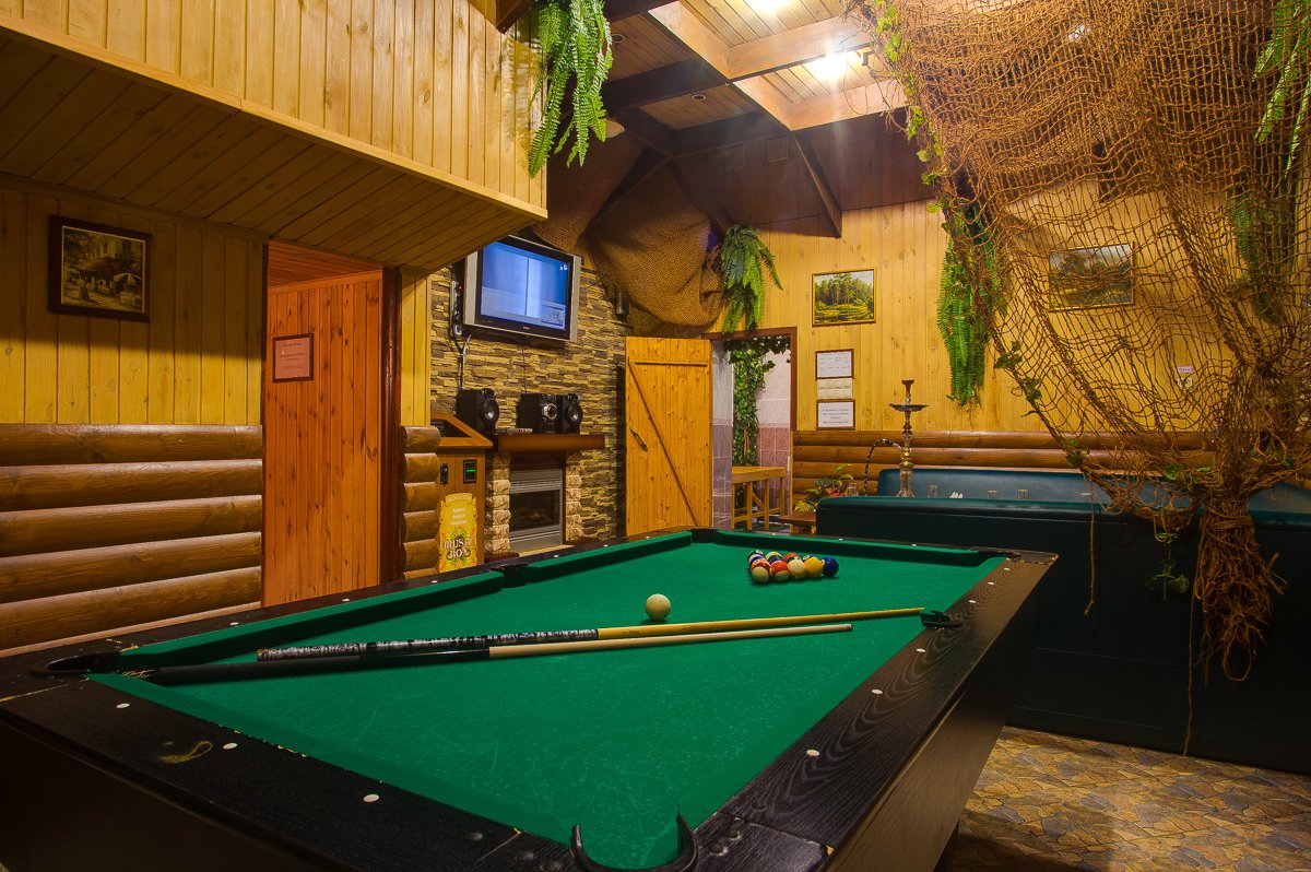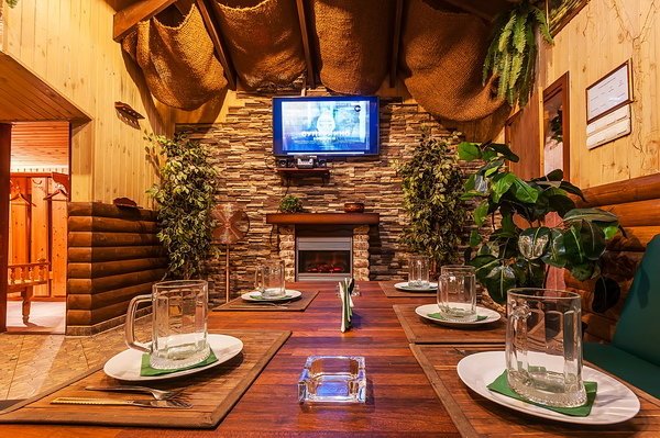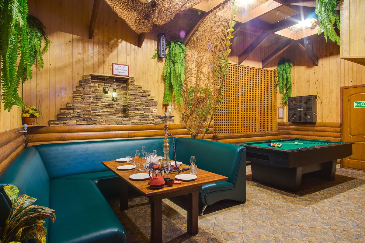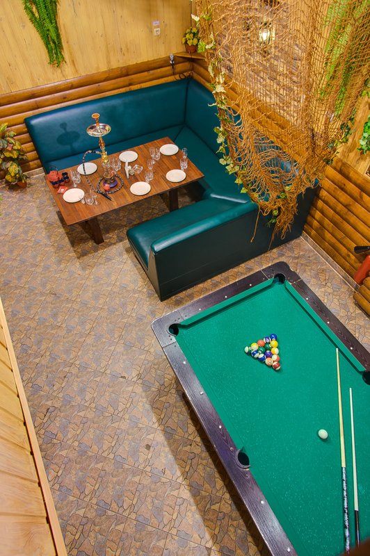 Не хочется в бассейн? Не проблема! Вместо этого можно посидеть в нашей комнате отдыха. Мы постарались создать здесь комфортный, стильный интерьер из максимально натуральных, экологичных материалов, выбрать мебель, которая будет одновременно удобной и эстетичной. Надеемся, что вы его оцените! Для создания настроения у нас есть бильярд, кальян и караоке. Также у нас работает бар, а если нужно, вы можете принести и собственную еду - мы не против! Только не забывайте, что плотная трапеза непосредственно перед посещением парной - это не самая хорошая идея, согласно мнению врачей. А вот после парной она совсем не повредит!